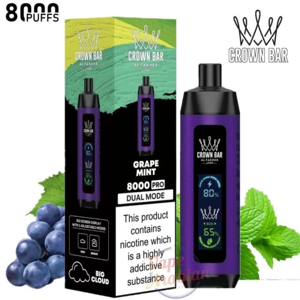 شيشة الفاخر كراون بار برو 8000 شيشة عنب النعناع AL FAKHER CROWN BAR PRO 8000 puffs GRAPE MINT