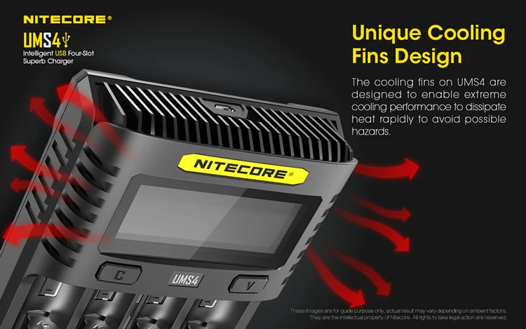 تم تصميم شاحن Nitecore UMS4 لمنع ارتفاع درجة الحرارة لكل من البطاريات الخاصة بك والشاحن نفسه. مع تصميم زعنفة مدمج عند حواف الشاحن ، فإن UMS4 قادر على جلب أداء تبريد من شأنه تفريق الحرارة بسرعة. بالإضافة إلى ذلك ، فإن UMS4 لديه تنظيم درجة الحرارة الذكية التي تمنع الشاحن من ارتفاع درجة الحرارة وسوف تضمن عملية شحن مستقرة. هذه الميزات ، جنبا إلى جنب مع المواد المتينة والحريق التي تشكل UMS4 ، سوف يحميك والبطاريات الخاصة بك من الخطر. ناهيك عن أن وظيفة توفير الطاقة ، وهو عندما ينخفض الشاحن بعد 3 دقائق من الخمول ، سوف تضمن أن UMS4 دائما على استعداد للاستخدام ولن تضيع أي تهمة من تلقاء نفسها.